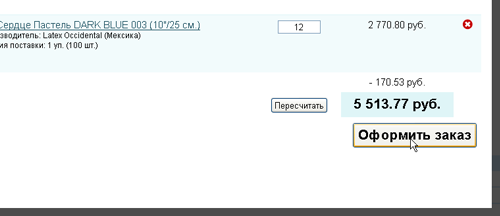 4. После того как вы удостоверились, что выбрали все необходимое и указали нужное вам количество товара, нужно нажать кнопку "Оформить заказ".