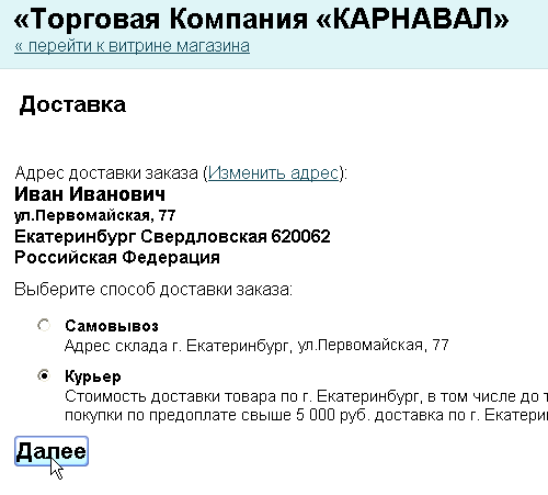 Сумма скидки зарегистрированному посетителю (клиенту компании ООО «ТК «КАРНАВАЛ») рассчитывается в корзине автоматически в соответствии с условиями предоставления скидки (смотрите раздел «Скидки», расположенный на главной странице сайта). Данная сумма скидки автоматически уменьшает итоговую сумму всего заказа.